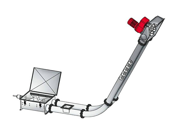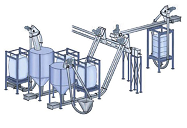 管鏈?zhǔn)捷斔蜋C是輸送粉狀、小顆粒狀及小塊狀等散狀物料的連續(xù)輸送設(shè)備,在密閉管道內(nèi),以鏈片為傳動構(gòu)件帶動物料沿管道運動。當(dāng)水平輸送時,物料顆粒受到鏈片在運動方向的能力。當(dāng)料層間的內(nèi)摩擦力大于物料與管壁的外摩擦力時,物料就隨鏈片向前運動,形成穩(wěn)定的料流;當(dāng)垂直輸送時,管內(nèi)物料顆粒受鏈片向上推力,因為下部給料阻止上部物料下滑,產(chǎn)生了橫向側(cè)壓力,所以增強了物料的內(nèi)摩擦力,當(dāng)物料間的內(nèi)摩擦力大于物料與管內(nèi)壁外摩擦力及物料自重時,物料就隨鏈片向上輸送,形成連續(xù)料流。 管鏈輸送系統(tǒng)的優(yōu)勢: (1)結(jié)構(gòu)緊湊,占用空間小,可以三維改變輸送方向。 (2)出口不必設(shè)置除塵器,在輸送物料時呆充裝氣體。 (3)物料沿著管子平滑輸送,物料破損少,緩慢的彎道輸送使很少的物料顆粒產(chǎn)生碎屑。 (4)能耗低——運行成本經(jīng)濟,整套系統(tǒng)只有一個電機來帶動。 (5)不會產(chǎn)生系統(tǒng)堵塞——適合輸送多種形態(tài)的物料。